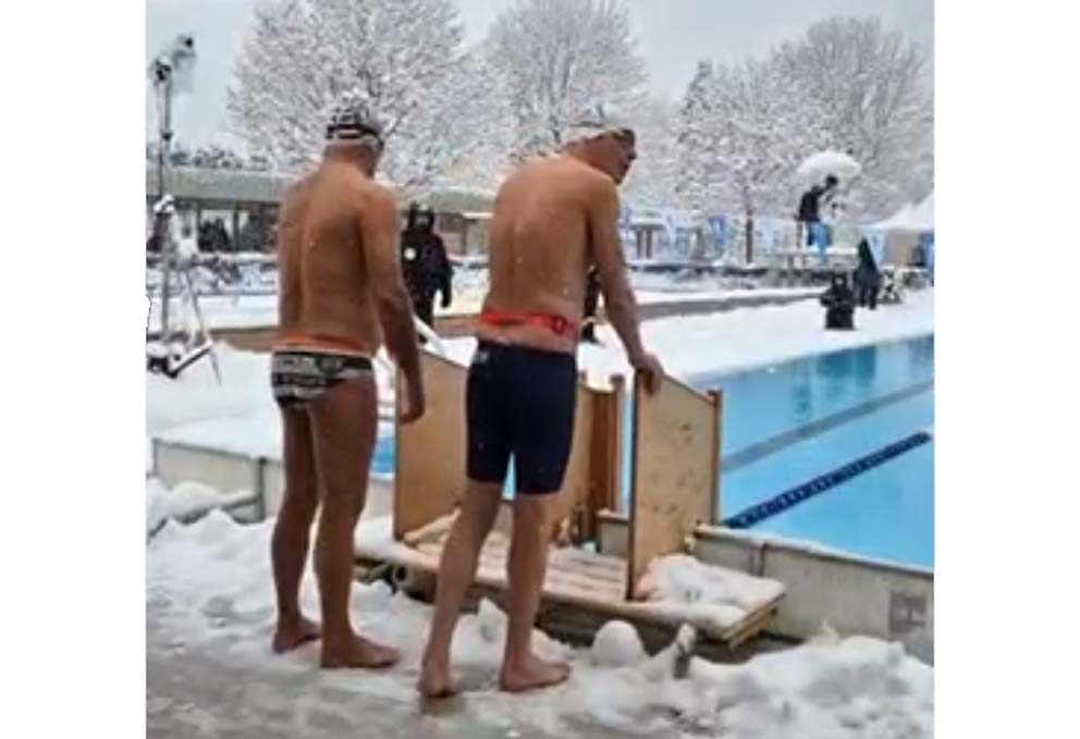 Pour la première fois dans ces conditions extrêmes, mais grâce à son habitude à nager en hiver dans le lac Léman, Alexandre Sacha Michel réussit l’exploit de remporter la 3ème place de la catégorie 60-64ans en 50m dos.